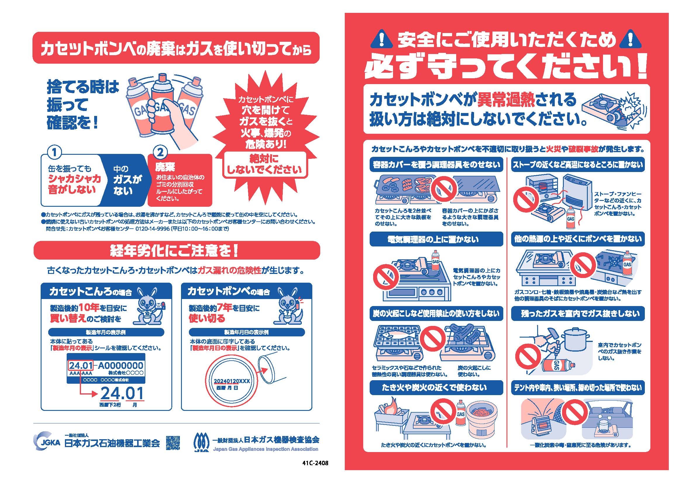 ◎詳しいカセットコンロ・カセットボンベの使い方は、一般社団法人 日本ガス石油機器工業会のホームページでご確認ください。